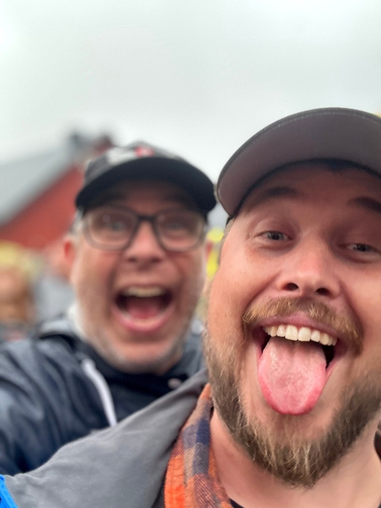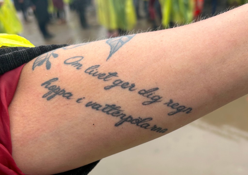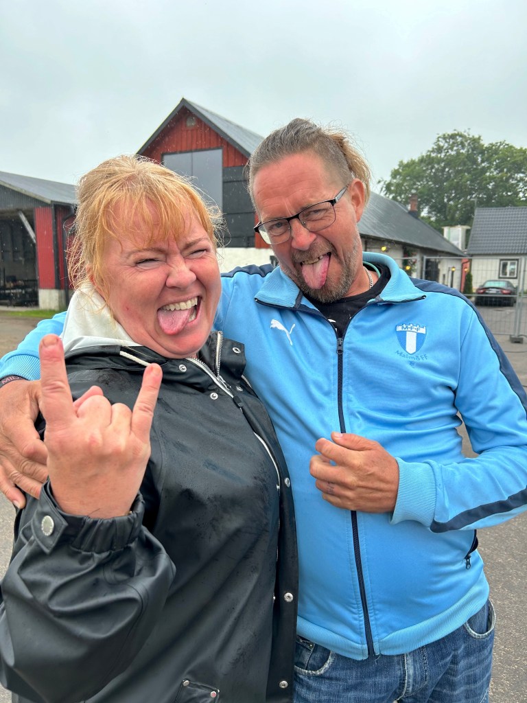Tatueraren sade på torsdagen att han skulle ta min tatueringsoskuld. Jag var laddad men fegade ur för jag visste inte vad jag i så fall skulle ha för något. Då träffade jag Christer Blomberg som hade gjort ytterligare en tatuering och varför inte tatuera in Midsommarrocken 2024? Han vågade men jag ballade ur. Vi får se nästa år. När jag vände mig om stod plötsligt en man i ljusblå jacka. Det var Joakim Frid och hans hustru Camilla. Han är en skåning som bär ljusbålått i Götet. Det är modigt ändå. Midsommarrocken 2024 gick som vanligt i vänskapens tecken.