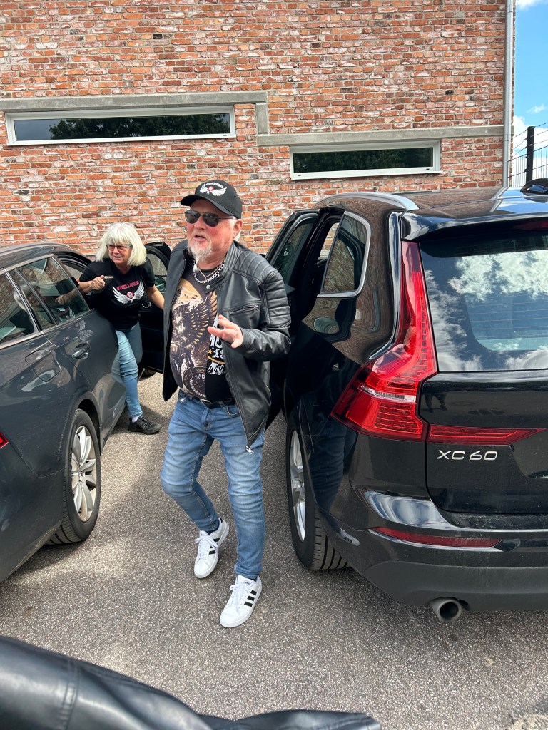 De två bilarna rullar in vid till artistingången. De parkerar strax bredvid kraftstationen i Knislinge. När bandet anländer till festivalområdet klockan 11.45 tas de emot vid grindarna till artistentrén. De lotsas raskt in bakom scen där alla artistkollegor har sina loger. De består av ett svart skynke där bandet får möjlighet att förvara sina saker. Gert-Inge rättar till luggen och Michael Lindman konstaterar: