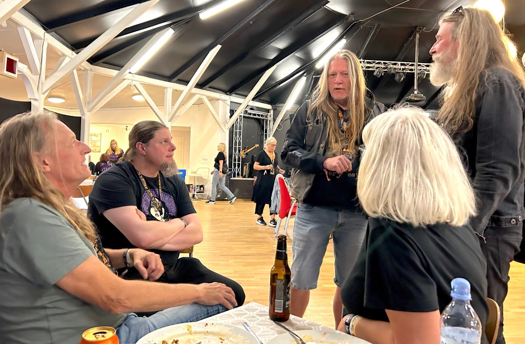 När signeringen är avslutad beger vi oss bakom scen där det serveras en traditionell taco med klassiska tillbehör. Det smakade bra efter en fantastisk rockkväll. Vi samtalar och konstaterar att Steelwings gjort en mycket bra spelning med mycket energi och bra dynamik mellan bandmedlemmarna på scen. Peter Fredriksson funderar på om han tar för stor plats på scen. Vi konstaterar att han definitivt lyfter Steelwings scenframträdande med sin karisma och energi. Peter Fredriksson tar emot den meningen med vänlighet och lättnad.